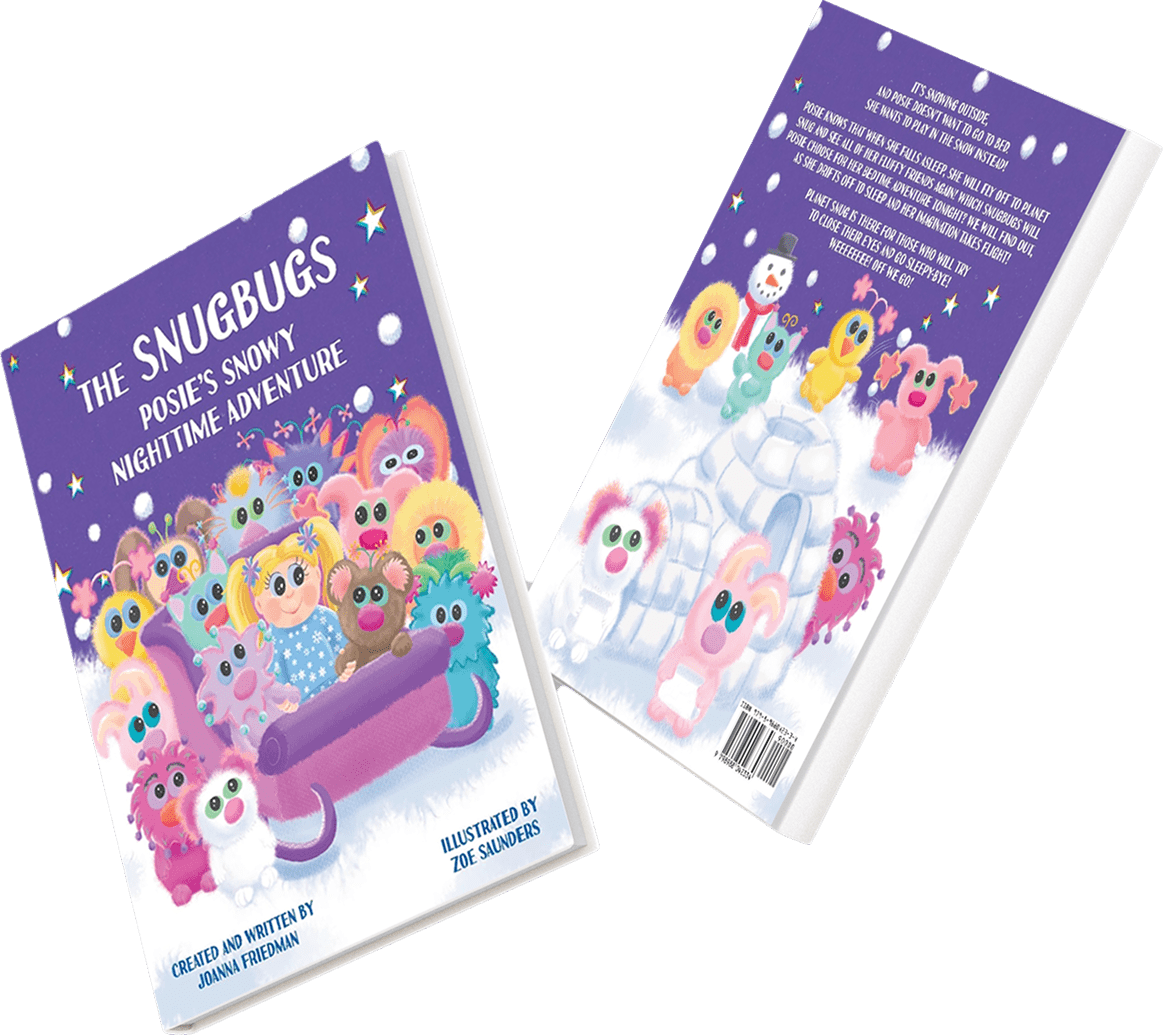 Joanna Friedman has a penchant for all things fuzzy, cozy, snuggly, furry, fluffy, cuddly, and huggable! One summer weekend in the late 1990’s, she sat down with an artist friend to do some pastel artwork. Her friend, Andrea, did some beautiful still life work, and the Snugbug characters randomly came to Joanna. She subsequently began writing books using the characters in a way that could be helpful to children. The bedtime struggle for little ones and parents came to mind. This book is the first in the series.